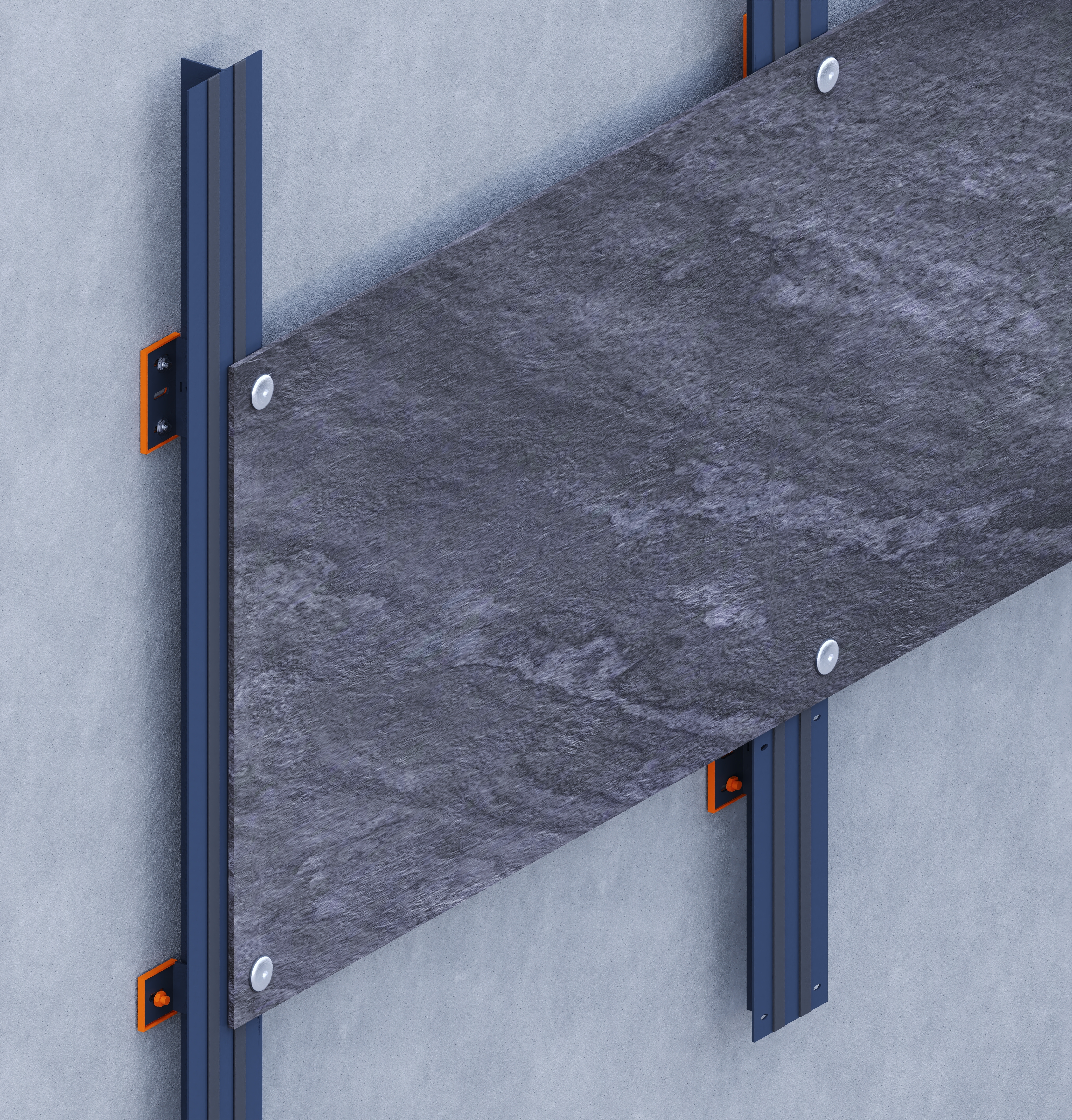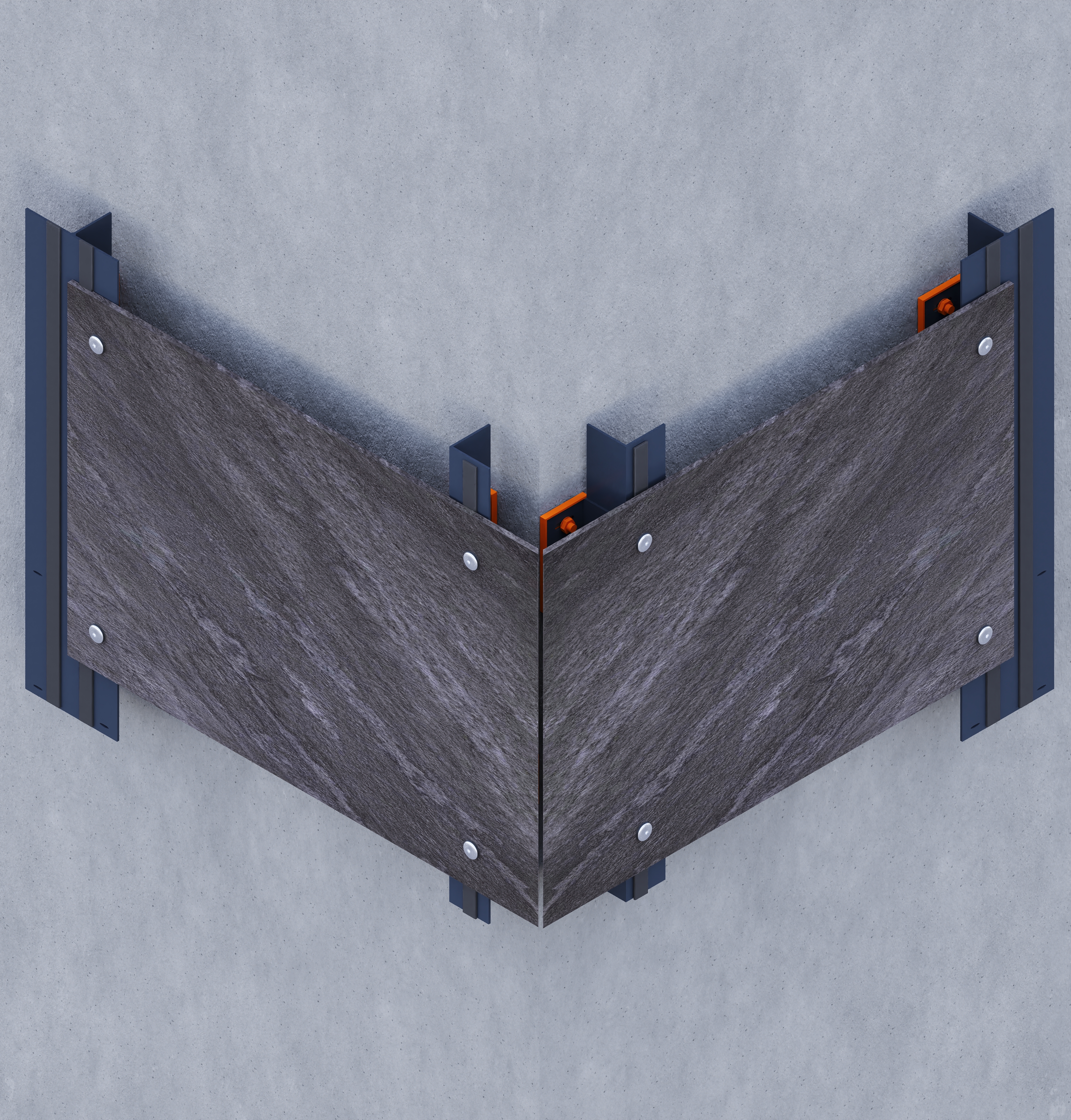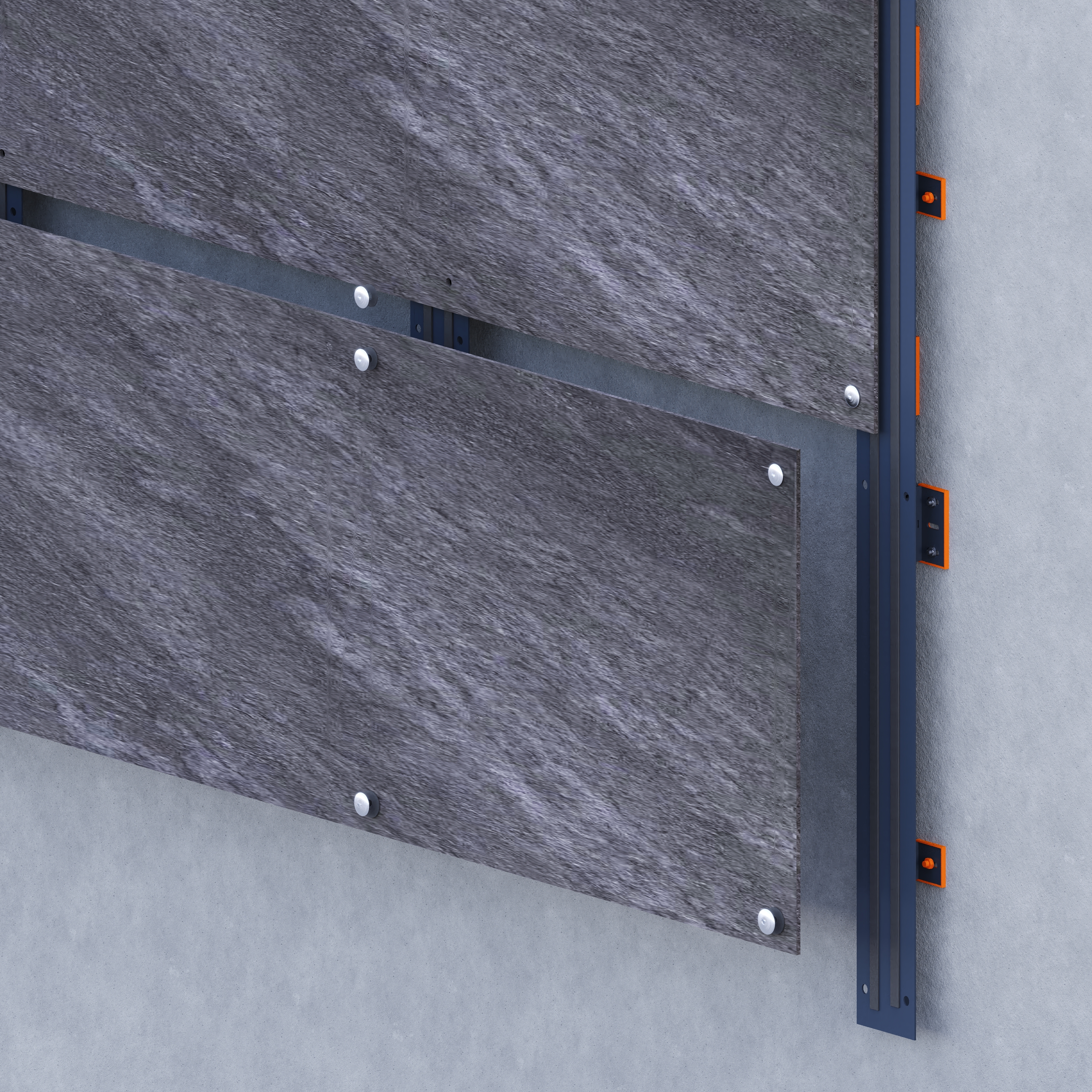The Rivet Fixation System is a visible mechanical installation method designed for thin (3 mm - 6 mm), large-format porcelain slabs. The system employs 316 stainless-steel rivets to affix the slabs to a prefabricated aluminum support frame, which is mechanically anchored to a vertical sub-structure.Capable of accommodating both vertical and horizontal slab orientations, this dry installation solution provides structural reliability, ease of maintenance, and adaptability to various sub-structures. Panels can be processed on-site or in workshops using precision cutting and drilling techniques. The system ensures modularity, allowing for the individual removal and replacement of panels while maintaining full access to the façade cavity.