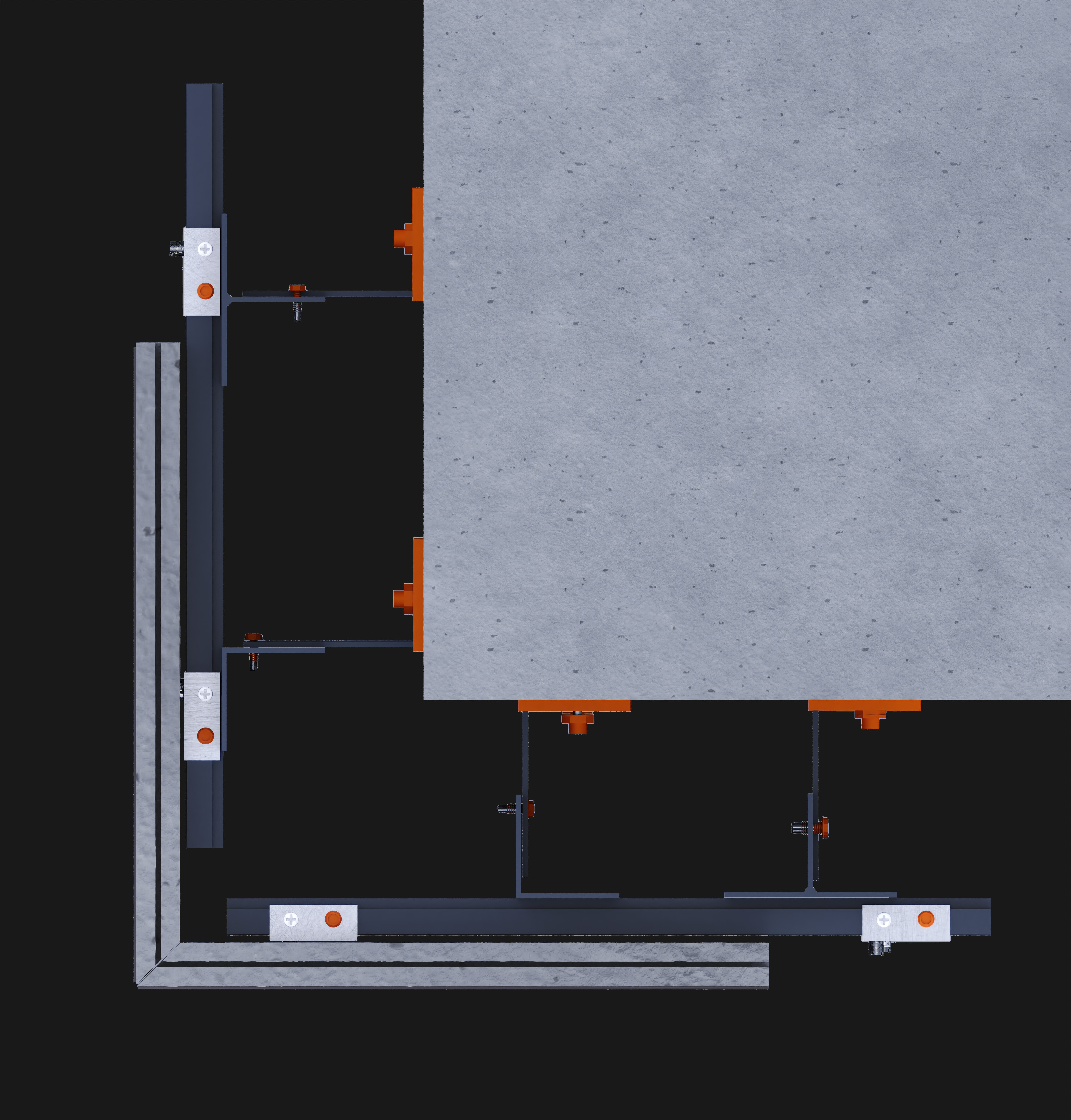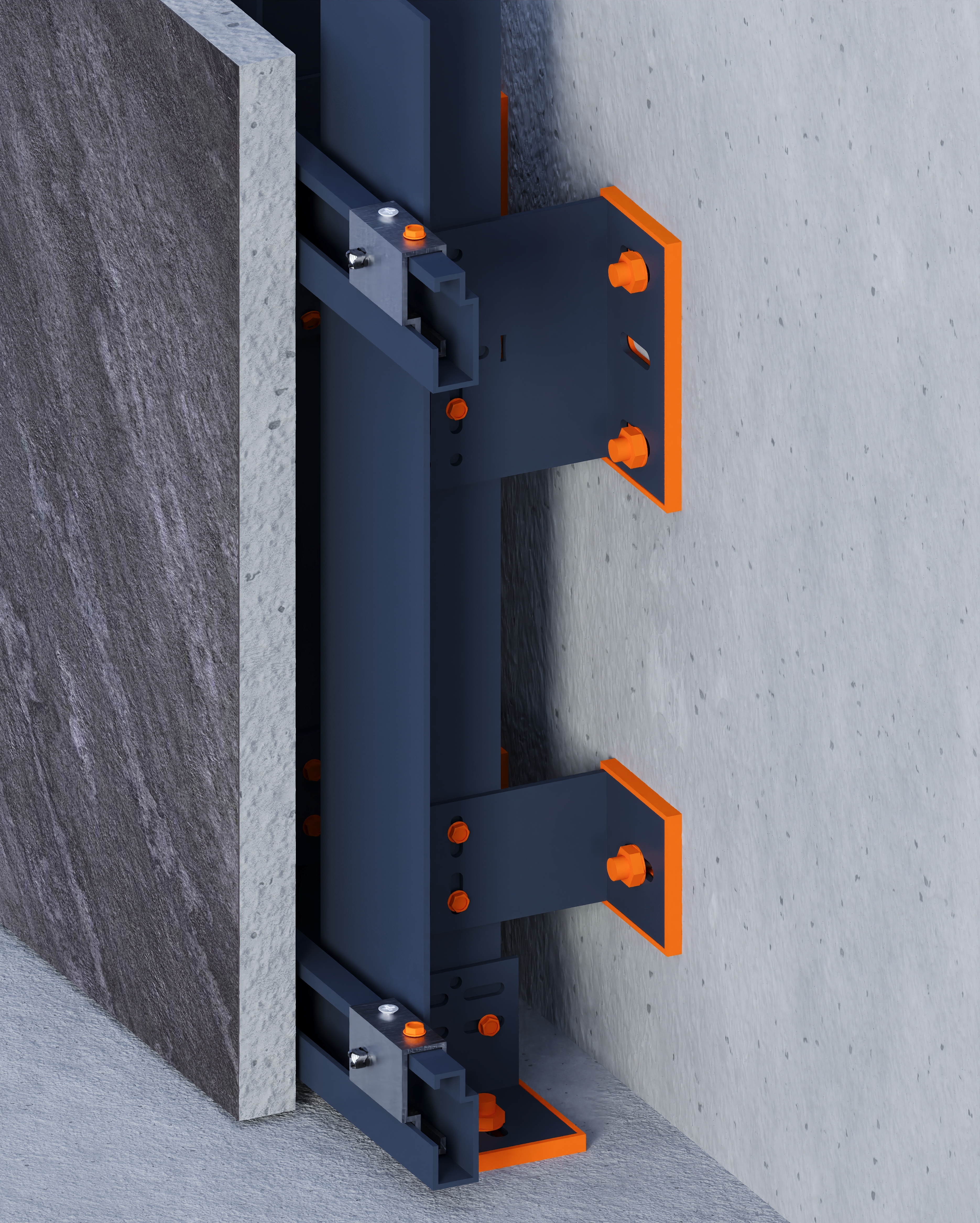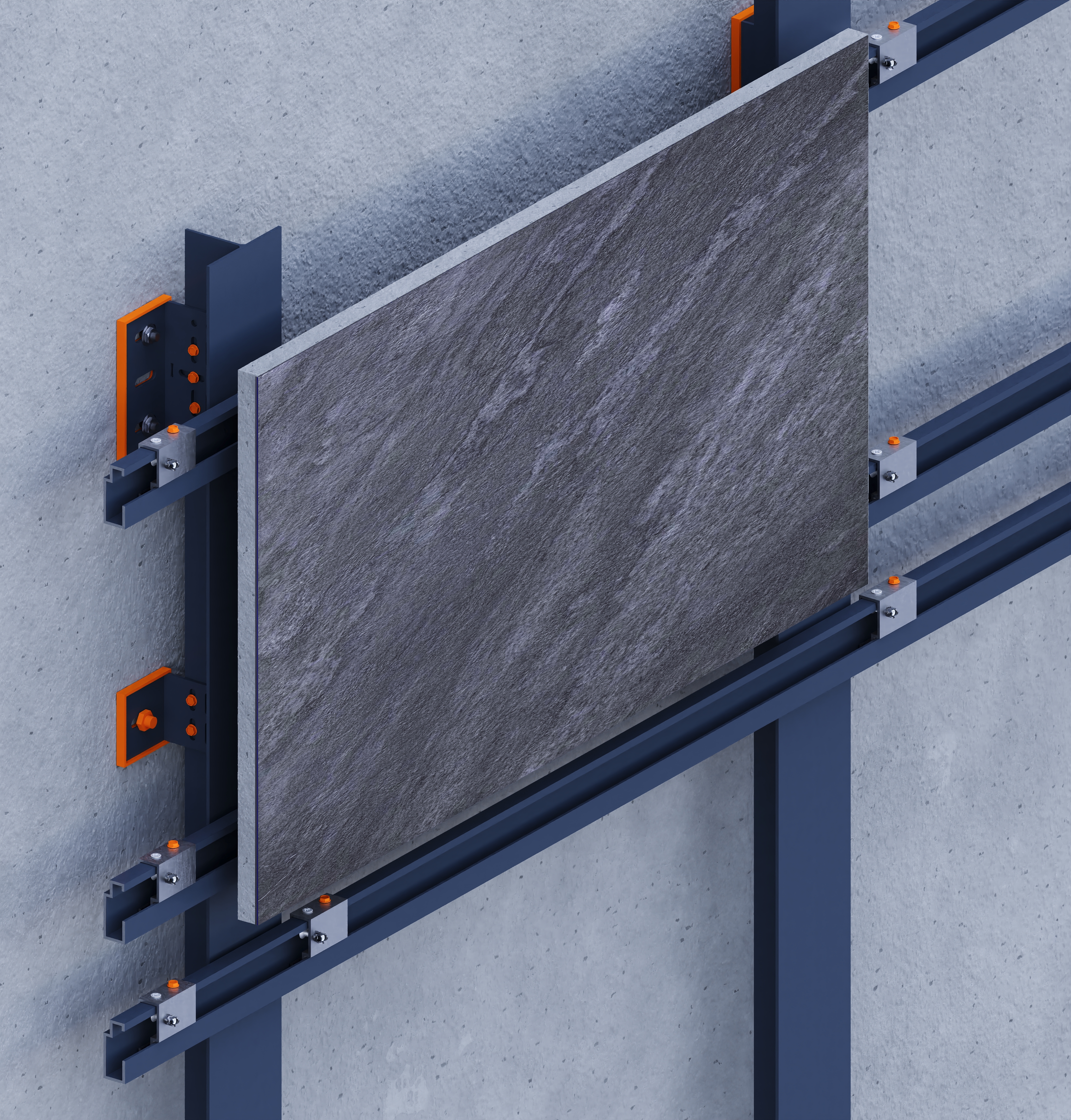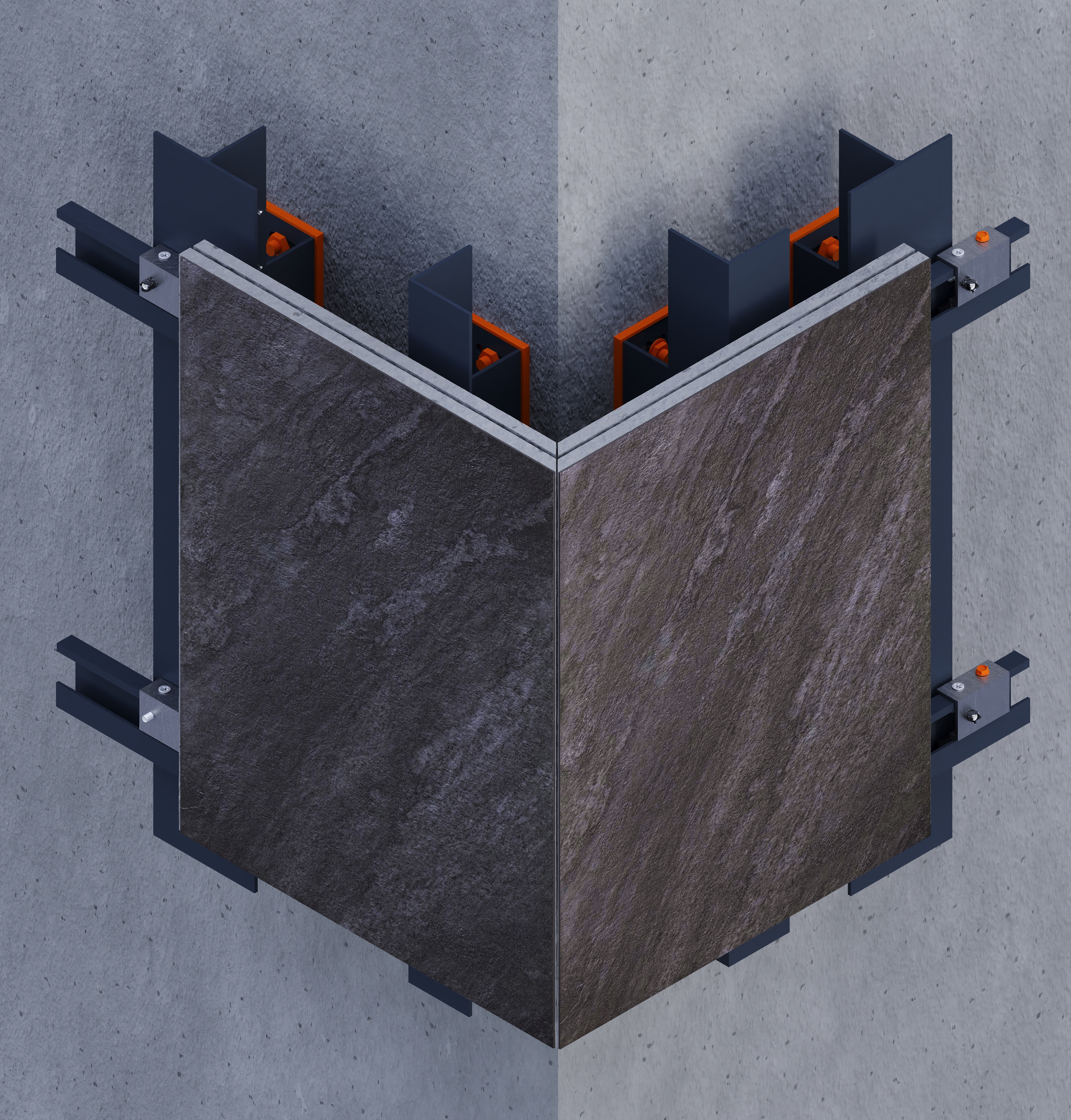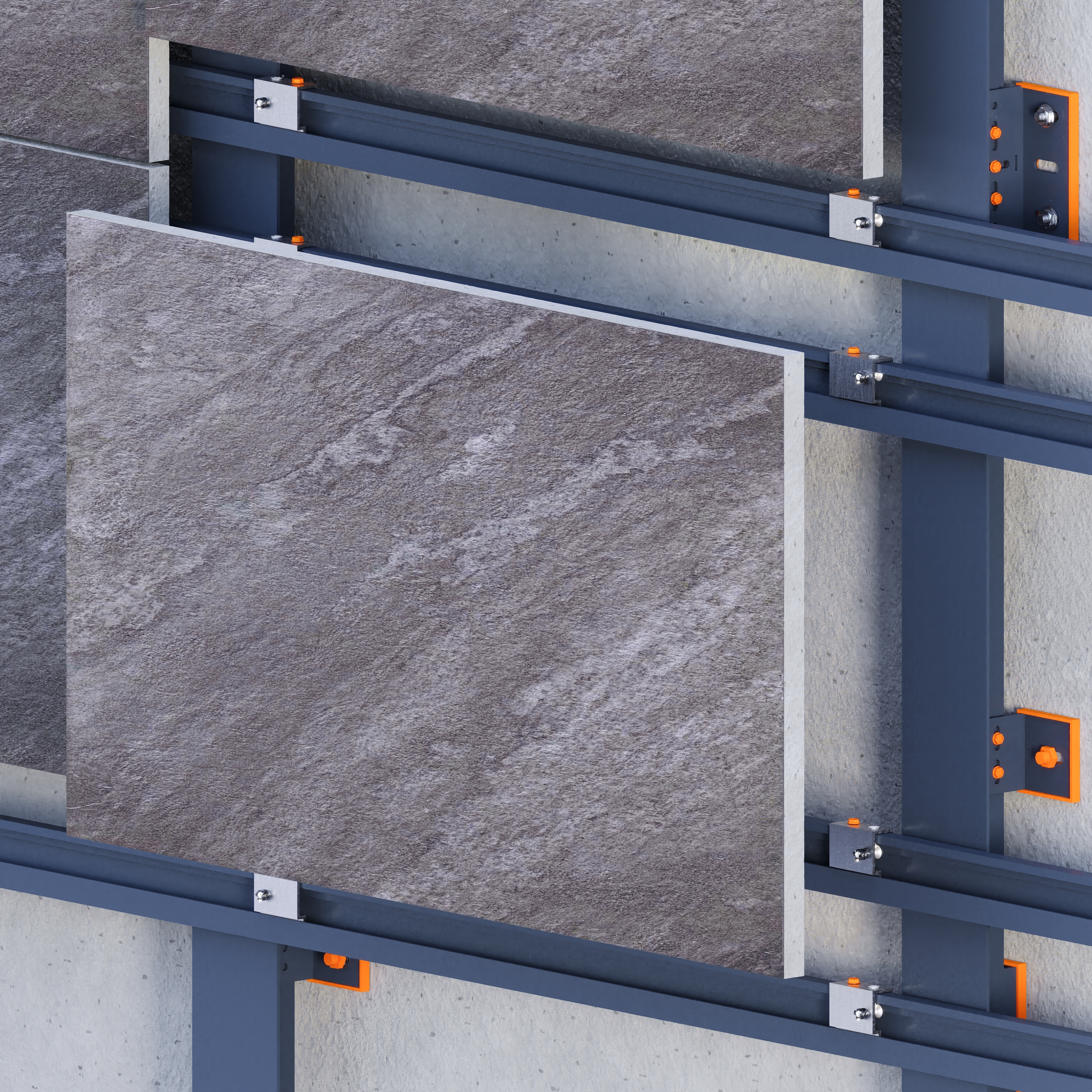 Designed for 12–20 mm porcelain slabs, this mechanical system uses undercut anchors drilled into the slab’s back face and fixed to a double-layer aluminum substructure. It enables concealed, secure installation with a clean, modern appearance.The system supports vertical and horizontal installation of large-format slabs up to 1620 × 3240 mm. Anchor placement is based on slab thickness, weight, and project requirements, with drilling performed on-site per supplier guidelines. Suitable for façades requiring high strength and flexibility, it allows precise alignment and adjustments during installation. A dry, adhesive-free method, it ensures long-term durability and structural safety.