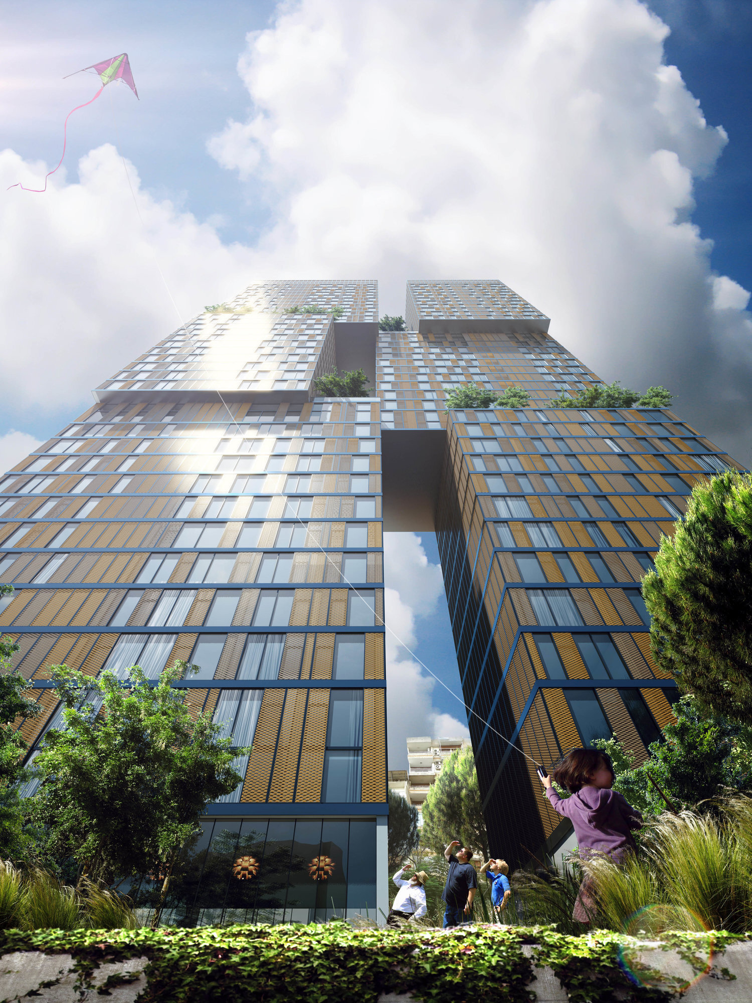 Ciel et Jardin presents a striking dual-tower design that redefines